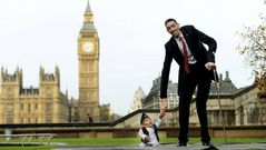 El hombre más alto y el más bajo del mundo, entre los que hay 196 centímetros de diferencia, coinciden en Londres para celebrar el sexagésimo aniversario del los récords Guinness