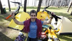 El montañero vigués partió ayer hacia el Annapurna, después de tres meses de preparación específica, con 130 kilos en una mochila cargada de material de escalada, comida y tecnología
