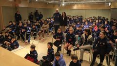 Rubén Guerreo, Fer Zurbriggen, Álex Suárez, Santi Paz y Fallou Niang visitaron los pabellones de Pontepedriña, el Lorenzo de la Torre, Vite y Restollal