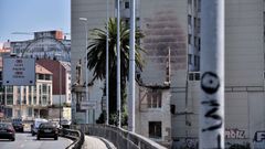El fuego dañó la fachada lateral del 393, apreciable ayer con la retirada de las lonas, y 28 vecinos dieron parte de desperfectos en las ventanas y persianas