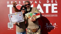 Sonia Rodríguez y Francisco Gil, de Lúa de Dexo, recibieron en Cantabria el premio al tomate más bonito del país por la pequeña variedad gominola que cultivan en Oleiros