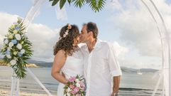María Xosé y José Manuel renovaron sus votos de matrimonio 25 años después de darse el «sí quiero» en una ceremonia organizada por sus amigos en la playa de O Osmo, en Corme