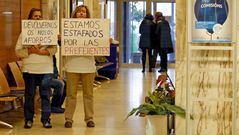 18 ene 2013 Una afectada por las preferentes «ocupa» una sucursal de Novagalicia Banco en Ribeira para reclamar su dinero María José Gómez y su madre muestran sendas pancartas A. G.