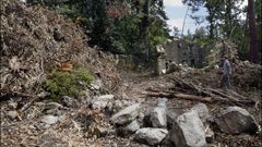 Parte de los muros de piedra de seca de los senderos que conducen a las ruinas rianxeiras de Abuín han sufrido daños por el paso de la maquinaria pesada