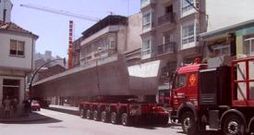 El transporte de una viga de hormigón de 74 metros obligó a cortar seis cruces al tráfico Unos 40 transportes de grandes dimensiones pasaron por Sarria este año