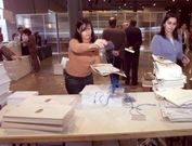 Una ATS y una asistente social reciben a las personas que se acercan al puesto del complejo barbanzano La direcciónquiere destacarsu actividad asistencial y la cartera de servicios