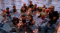 EL MUNDO DESDE UNA PECERA . El mago David Blaine contempla a los periodistas desde el interior del tanque en el que permanecerá sumergido durante una semana sin recibir alimentos.
