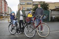 27 nov 2015 El uso diario de la bicicleta se resiste en las calles de Carballo Dos padres llevan a sus hijos a clase sobre ruedas llueva o haga sol S. G. Rial