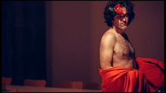 As dúas actrices ensaian no auditorio de Rianxo «Voaxa e Carmín», un texto escrito por Esther Carrodeguas que pretende dignificar ás singulares irmás de Compostela