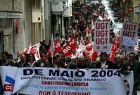 CC.OO., UGT y CIG se movilizaron contra el paro, la guerra de Irak y la escasez de infraestructuras Los sindicatos reclaman medidas para poner fin a la crisis de los astilleros