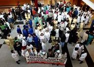 Delegados de Comisiones Obreras critican el acuerdo suscrito con los sindicatos CIG y UGT La Consellería censuró que varios participantes en la protesta zarandearan a Gonzalo Constenla