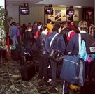 Caras de sueño y expectación en la primera jornada del itinerario de la delegación dezana a Caracas Ojeras y sorpresa, son los signos del primer día del viaje oficial del Concello de Lalín a Venezuela. Por la falta de sueño -la delegación partió a las cuatro de la madrugada del Auditorio-, y por las noticias del país de destino. El presidente, Hugo Chávez, amenaza con decretar el estado de excepción para hacer frente a la manifestación convocada por empresarios y sindicatos contra las nuevas medidas económicas del Gobierno. Por lo demás, tranquilidad, a pesar de las inconveniencias de organizar una expedición de cien personas y muchos bultos. Y es que, además del equipaje convencional, las bodegas del avión se llenaron con los instrumentos de los más de cincuenta componentes de la Banda de Música de Lalín.