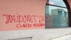 En el grafiti se puede leer «Traidores da clase operaria», y Tino Fernández exige que se ponga freno a estas «accións intolerables, barbaras e propias dunha ditadura»