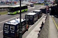 Una treintena de furgones antidisturbios blindaron los accesos a Vigo y objetivos estratégicos Los huelguistas calificaron la jornada de «día de reflexión», aunque quemaron diez contenedores