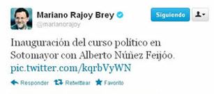 01 sep 2012 Polémica en Twitter: Rajoy inauguró la precampaña en «Sotomayor» Un tuit del equipo del presidente del Gobierno dispara la controversia en la por castellanizar el nombre de la localidad pontevedresa La Voz