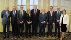 Dos días después del anuncio de lo que será el nuevo hospital, el mismo salón de actos acogió la despedida de más de un centenar de trabajadores que se jubilaron. El conselleiro de Sanidade y Donato, embajador del Deportivo acudieron a la cita