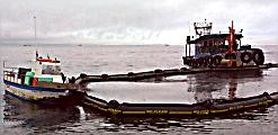Cada flotador será arrastrado por dos embarcaciones para cercar el hidrocarburo y facilitar su succión Nuevas manchas podrían llegar a la ría a partir del fin de semana