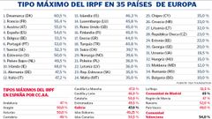 El tipo máximo del IRPF en España rebasa en 15,5 puntos la media europea