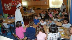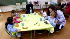 Seis familias usuarias de la escuela amiense le preparan a sus hijos la comida que les sirve una monitora que contrataron en espera de que el centro tenga comedor