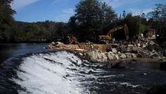 El caudal almacenado en este recodo abastecía los molinos de agua de A Ponte Vella La estructura se resintió por la sacudida que provocó hace años un temblor de tierra