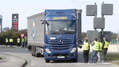 Empresarios y autónomos que secundan el paro están apostados en las rotondas y no dejan moverse a los vehículos que llegan al recinto industrial. «Camión que se mueva, camión al suelo», señalan desde un piquete