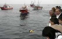 Un crespón de luto presidió la procesión marítima y se lanzó un ramo al mar en su recuerdo Los barcos de bajura, amarrados en señal de duelo, al final????se????sumaron????a?????los actos como tributo