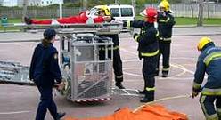 Bomberos y Protección Civil «rescataron» a un alumno y a un obrero Los escolares, evacuados al patio, siguieron el espectacular dispositivo de seguridad