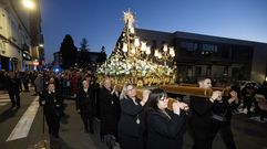 Las imágenes del Cristo da Mocidade, el Santo Cristo da Milagrosa, Santo Enterro (San Cristovo), Nosa Señora da Piedade y Nosa Señora das Dores recorrieron las calles hasta llegar a la Praza. Acompañó la Banda Municipal