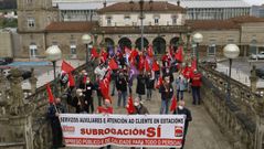 08 may 2021 Exigen continuidad del personal de servicios auxiliares de Renfe Comisións Obreiras realizó una concentración en la escalinata de la estación del tren