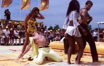 La playa de Baltar en Portonovo acogió ayer su primer Campeonato de Lucha en Barro «¿Me das un beso, bonita?» La chica que repartía gorras amarillas de una conocida marca de ron cubano -con bikini a juego, por cierto- sonrió. «Claro, señor, baje aquí, que le doy los que quiera». Inocente ella, confió en que los dos ósculos de rigor en las mejillas fueran suficientes para el simpático turista. El resto de la gente lo veía venir. Cuando a través del micrófono inalámbrico que la joven tenía colgado de la cintura del bañador se escuchó un «¡en la boca no, señor!», los asistentes al primer Campeonato de Lucha en Barro que ayer se celebró en la playa de Baltar en Portonovo giraron la cabeza.