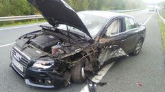 11 may 2016 Un conductor herido leve al invadir el carril contrario y colisionar contra un camión en Curtis El accidente se produjo en la N-634, en las proximidades de la cárcel de Teixeiro