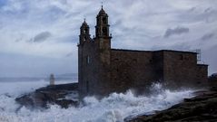 06 ene 2014 Las olas azotan el santuario da Virxe da Barca El temporal rompe de nuevo la Pedra de Abalar y el muro frontal