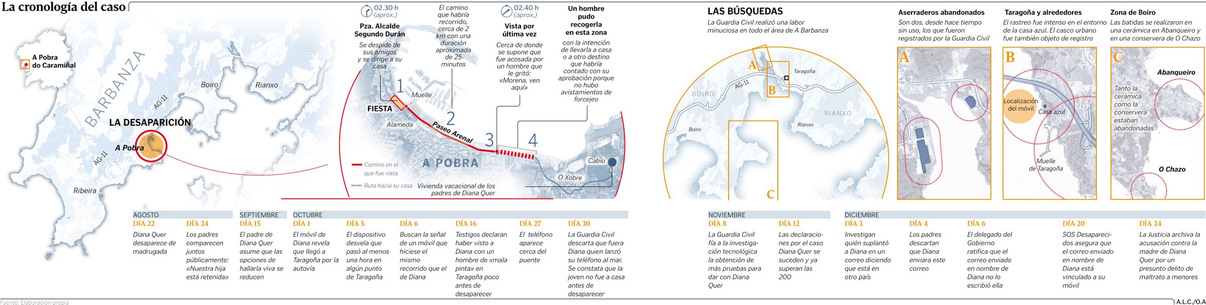 La Policía inspeccionó con perros una finca en Ribeira que un testigo relacionó con Diana Quer