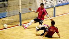 14 sep 2013 Raúl se lo pone difícil a Juanjo en la portería del Santiago Futsal El equipo compostelano se adjudicó el derbi ante el Azkar Lugo (4-3) gracias a las grandes intervenciones del portero NASO CALVO