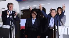 10 may 2018 Los tres americanos liberados por Corea del Norte aterrizan en Estados Unidos El presidente Donald Trump se fotografía junto a los presos a su llegada a la base aérea y asegura que «todo el mundo cree» que se merece el Nobel de la Paz La Voz / Agencias