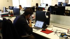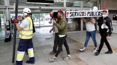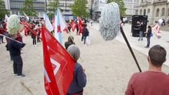 Asamblea general de trabajadores del Concello de Vigo en la Praza do Rei, que claman por una «dramática» falta de personal