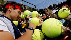 05 may 2013 Rafa Nadal se reconcilia con el Masters 1.000 de Madrid El tenista español da su visto bueno a las pistas del Masters, que vuelven a la tradicional arcilla naranja Dpa