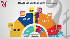 El bloque independentista y el constitucionalista tan solo están separados por el 1 % de los votos según la encuesta a cierre de urna de «La Vanguardia»