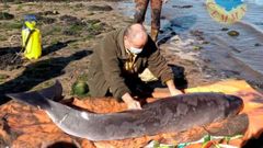 20 nov 2020 Vara en Vilaboa una rarísima especie de cetáceo, un cachalote pigmeo El ejemplar presentaba heridas por mordedura de quenlla o tiburón azul López Penide