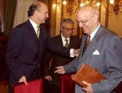 La caja financiará obras, becas de primer trabajo, conferencias, cátedras y actuaciones sociales en el campus Caixanova firmó ayer con la Universidad de Vigo, el mayor convenio de su historia, en palabras de su director general, Julio Fernández Gayoso. El rector de Vigo, Domingo Docampo, y el director general de Caixanova, Julio Fernández Gayoso, suscribieron un convenio marco de colaboración en el que se prevé, entre otros asuntos, una aportación de la entidad crediticia a la finalización de las obras de la Ciudad Universitaria.