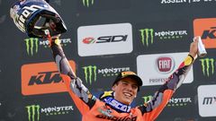 La lesión de su máximo rival le hace ya campeón del Mundo de motocrós, hito que se une al título universal júnior de 65cc y el Europeo de 125cc, y a su arrojo para superar graves lesiones de pulmón, tibia y clavícula