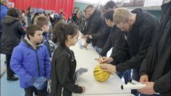 11 abr 2019 El Obradoiro, en As Pontes Endesa llevó al equipo a la villa para mantener un encuentro con los niños La Voz