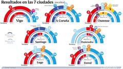 Los populares se convierten en la lista más votada con cuatrocientos votos de diferencia con los socialistas. La Marea cede hasta los 6 ediles, el BNG obtiente 2 y Ciudadanos entra en María Pita por primera vez con 1 concejal