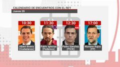 Resumimos en cuatro minutos qué ha dado de sí la jornada de hoy en Zarzuela. La situación se complica. PNV, ERC y Convergència votarán en contra de Rajoy en primera y en segunda instancia.