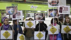 Activistas contra el aquiler de vientes y de Femen han protestado a las puertas de las instalaciones en las que se celebraba «Surrofair», mientras personas a favor pedían su legalización en España