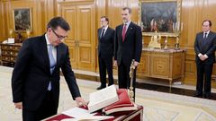 08 mar 2018 Román Escolano jura como ministro de Economía ante el rey El ministro Rafael Catalá ejerció como notario en el acto, en el que también ha estado presente Mariano Rajoy. Tomará posesión de su cargo este viernes tras participar por vez primera en el Consejo de Ministros EFE