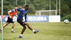 El Deportivo, que encadena tres jornadas sin marcar, se esfuerza por mejorar la precisión de sus centros y acciones de estrategia incluyendo en sus entrenamientos un gran cubo a modo de cesta
