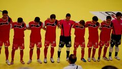 25 jul 2013 El Santiago Futsal dedica la medalla de bronce a las víctimas del accidente ferroviario David y Alan Brandi marcaron los goles y besaron el brazalete negro después de guardarse un minuto de silencio en el Mundialito de Kuwait NASO CALVO