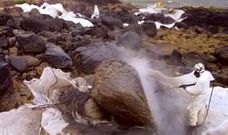 Los veraneantes agotaron los productos de limpieza en las casetas de Protección Civil en Razo En Corcubión, Fisterra o Muxía son perceptibles las bolas de fuel entre la arena