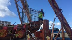 Los técnicos de Enmacosa inspeccionan todos los elementos de las barracas instaladas por la feria de A Peregrina en Pontevedra, así como comprueban que los propietarios disponen de toda la documentación en vigor y el seguro de responsabilidad civil al día